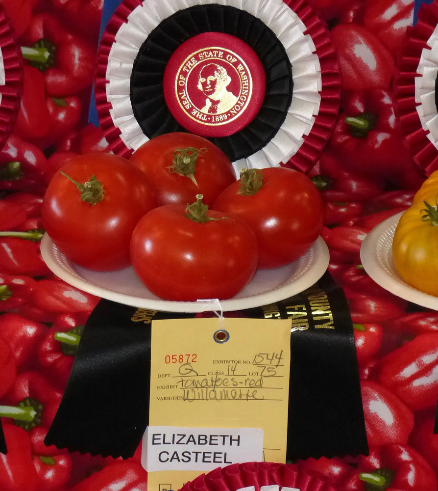 I rec’d an interesting question from one of my customers. He asked me how my garden was growing and what was my favorite red variety. Every year I grow different tomato varieties, not all of them red. This year, I am loving the Marbella, Red Pear, Willamette and Giant Tree Tomato, all of which are red and very prolific. I won a grand prize at the fair for my Willamettes, an aspiring early heirloom from Oregon.