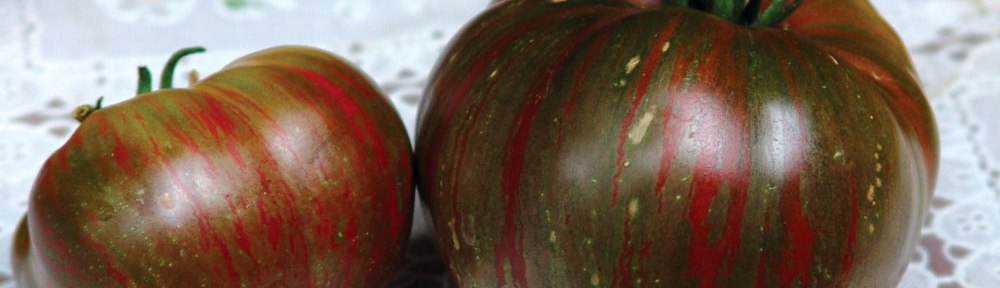 Meet Fred’s Tye Dye. I don’t know who Fred is but I love his tomato. This is another tomato out of the Dwarf Tomato Project. It is the most beautiful color, hopefully you can see the stripes in this picture, it is from my garden. The taste was delicious. The growth habit very manageable as you can see below. This is a mid season producer and is one of the taller dwarfs although mine didn’t get any taller than 4 feet. It was one of the first ones to color up. As with any heirloom, size varies from baseball to softball size. One of the other things I like about the dwarfs is their stocky stems and their rugose, regular leaves, very crinkly and dark green.