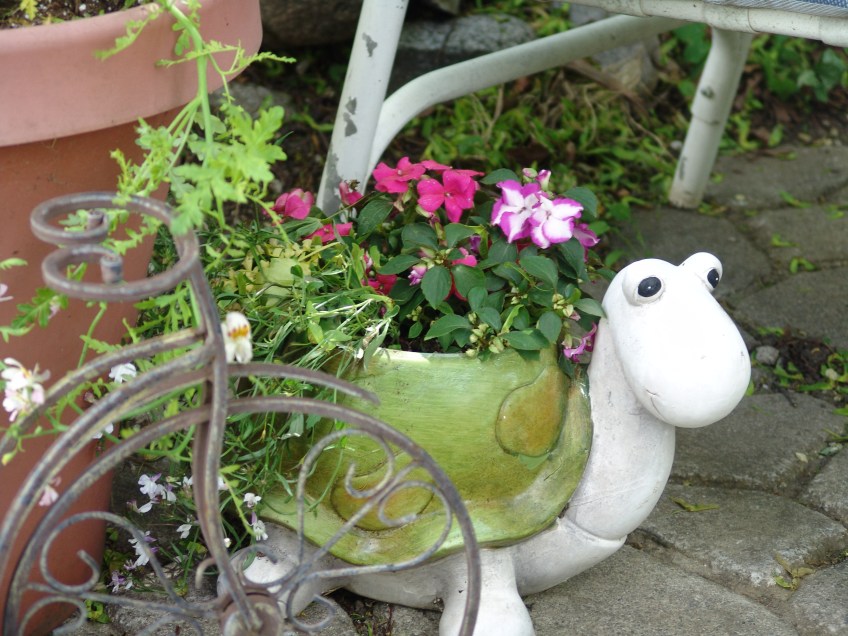 mixed flowers21 Published March 28, 2020 at 3264 × 2448 in Container Gardens Cute little guy with impatiens. For a shade garden, small soil cavity so better for a shade garden where it won’t dry out as fast.