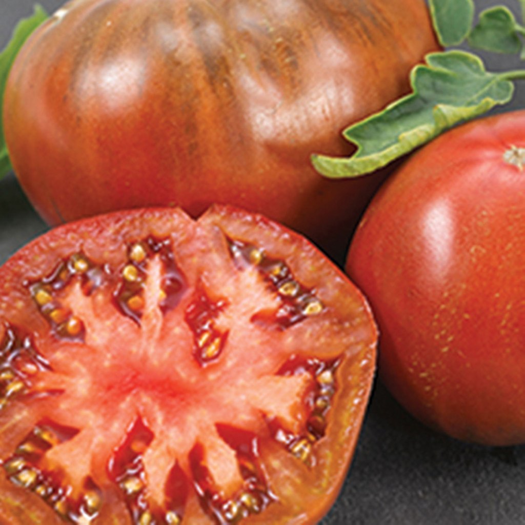Fans of Cherokee Purple will fall in love with this exceptionally flavored heirloom hybrid. Attractive, flattened globe shaped, 9 to 10 oz. fruits are firm, smooth and truly purple inside and out. Indeterminate, main season
