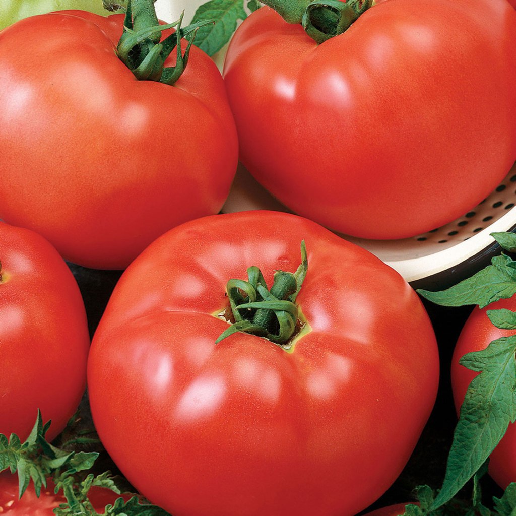 This globe shaped beefsteak tomato is firm and fleshy with a beautiful red color and dark green leaves A heavy producer. It offers great foliage protection against the summer sun. Superior disease resistance. Indeterminate, main season