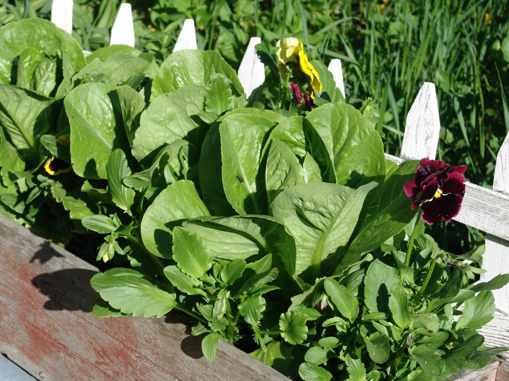 When you harvest your lettuce, if you planted petunias or pansies or other flowers in the same pot, they will fill in the blanks