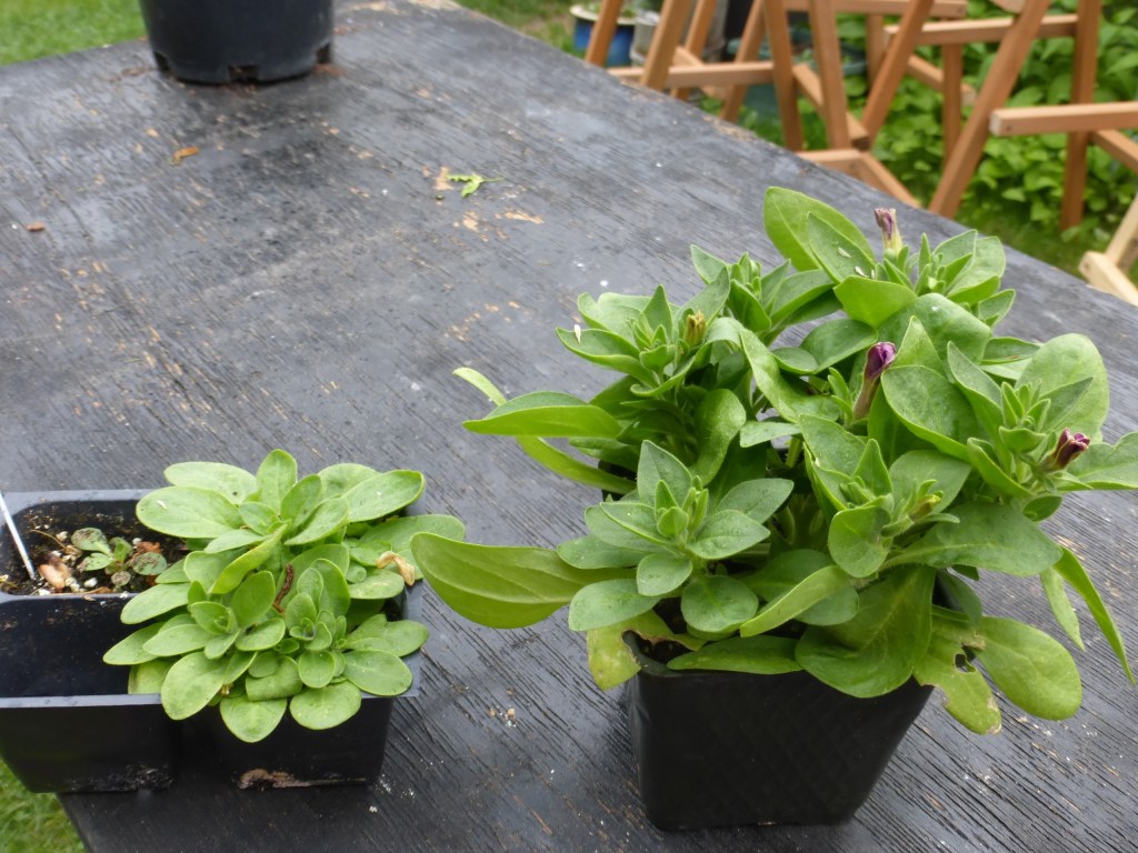 #1 Available real estate. When you buy a plant check the root ball. It may fill the pot and you will need to transplant them into a bigger pot to keep them growing. One of the reasons that I start some really early and put them into a gallon-size pot. Real Estate is everything for a plant. Below is the same variety of petunia. One was transplanted into a larger pot, and the other stayed in its old container. The difference is amazing.